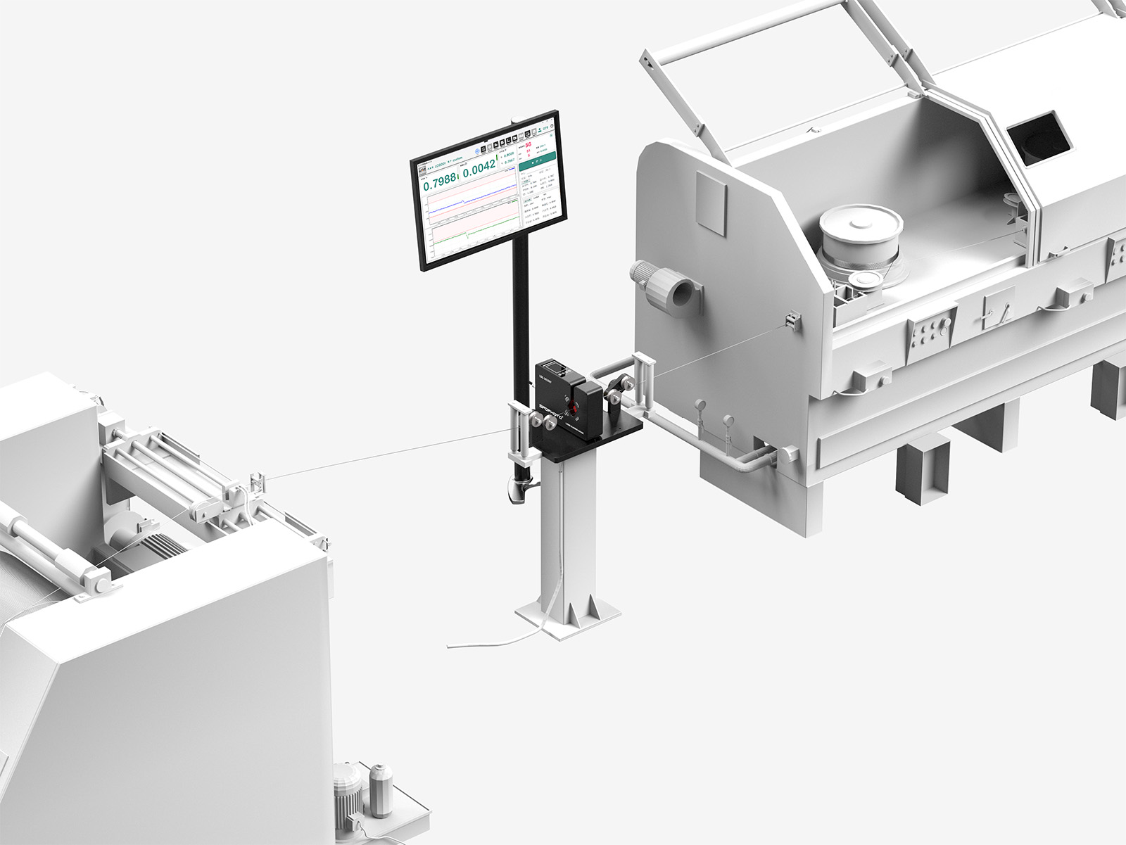 During the wire drawing process, the diameter gauge is placed at the final inspection stage to enable automated measurement. It features an automatic over-limit alarm function, and the software records and outputs data for digital production monitoring.