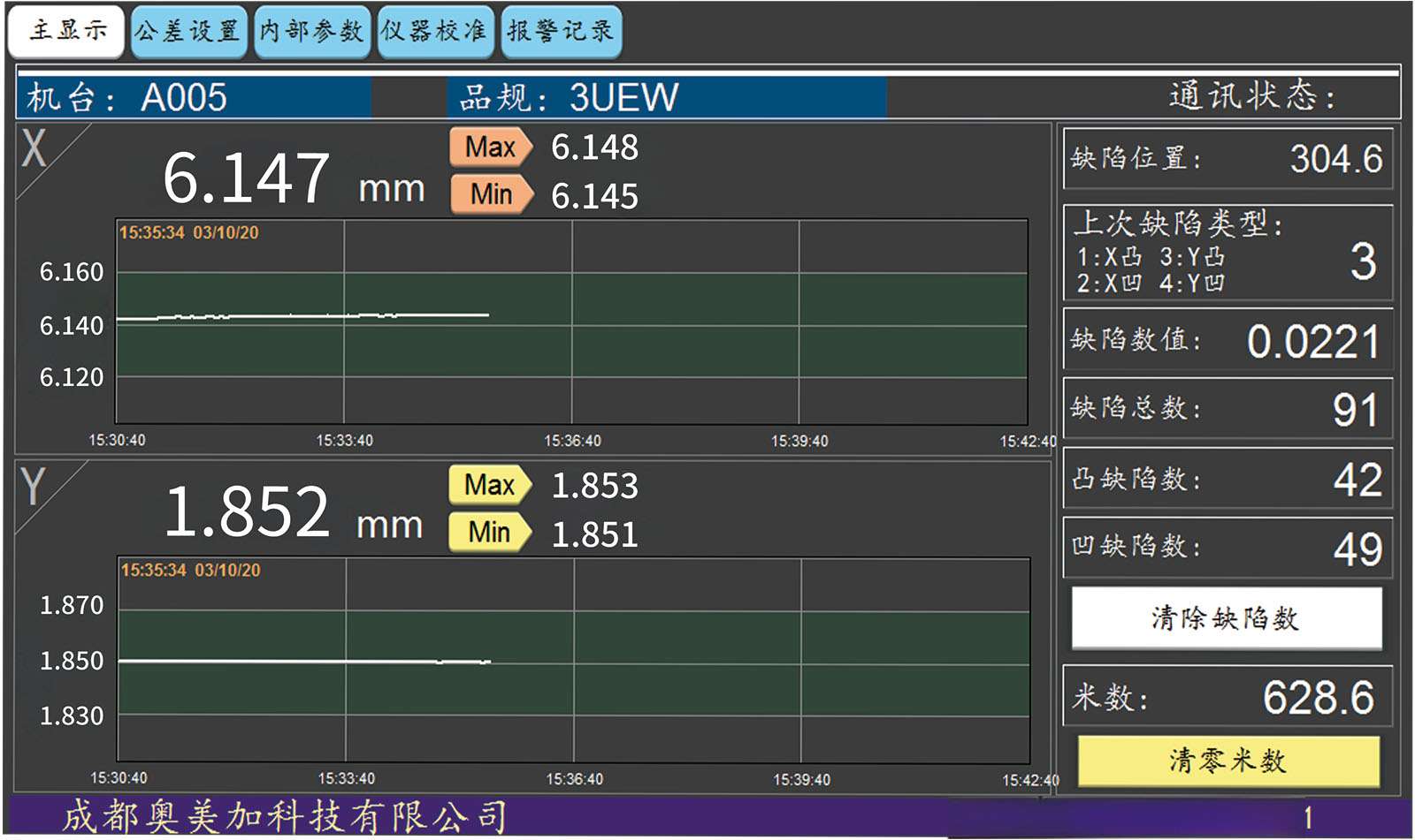 Additionally, through the software system, alarm signals can be triggered, and defect positions, sizes, and types (X direction: concave, convex; Y direction: concave, convex) can be recorded.
