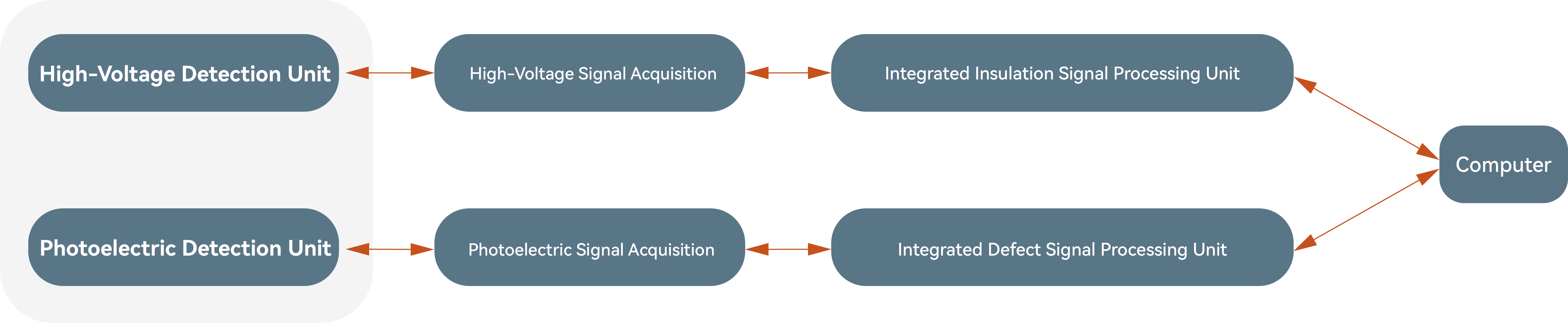 | This system can simultaneously conduct online non-contact detection of surface defects and high-voltage pinholes of the target object through two principles.