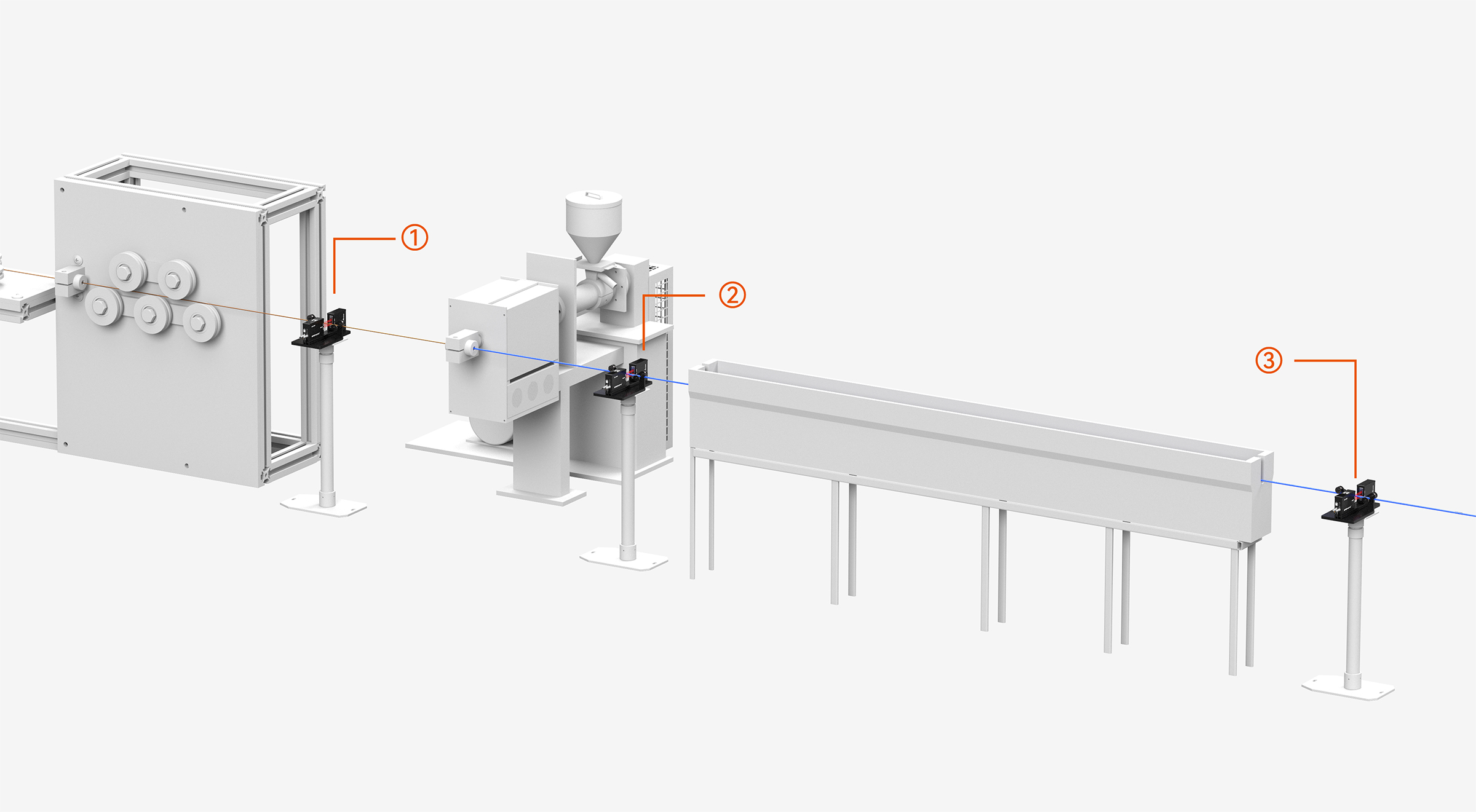 ②Extruder Outlet: After the wire is extruded, the diameter measuring instrument immediately measures the outer diameter of the cable to ensure it meets the specifications. This installation location allows for timely detection and correction of any diameter deviations during the extrusion process, ensuring product quality.