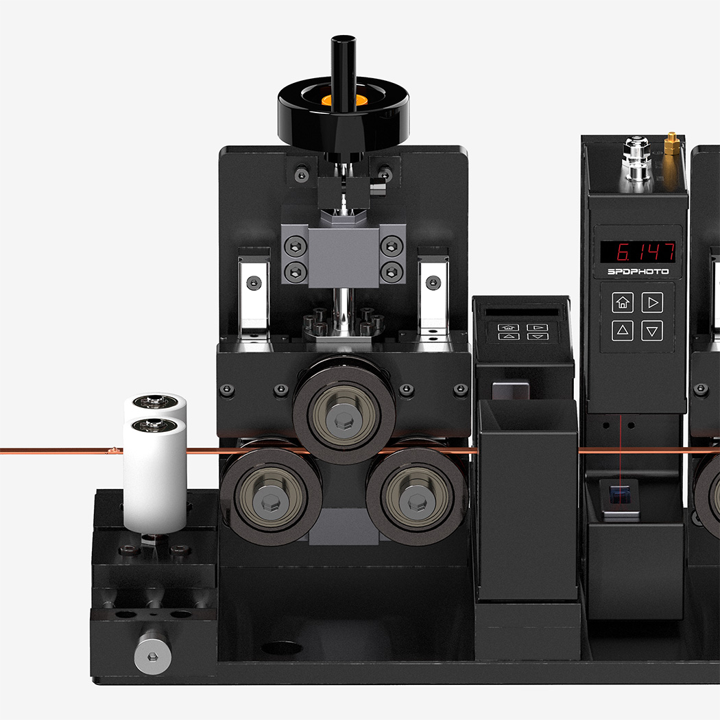 The guide wheel system and clamping device work together to minimize wire vibrations and twisting during movement within the measurement area, ensuring stable detection during high-speed production. Additionally, the guide wheels are treated with a fine ceramic coating, enhancing lubrication and wear resistance, protecting the wires from damage while ensuring durability.