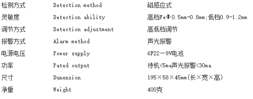 3、在使用时只宜作左右来回摆动,使其检测效果最好,不可作上下重拍,以免产生误报警甚至损坏仪器。